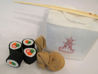 I think that introducing kids to culturally diverse food is important and through play is a great way to do it! The take-out box, sushi, and fortune cookies all came from free tutorials.